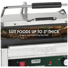 A placa superior articulada e com balanceamento automático adapta se a alimentos de até 3 de espessura
