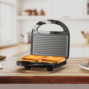 Sanduicheira Cadence SanduGrill com 750W de potência, chapas antiaderentes, aquecimento em ambas as chapas, alça com trava e luzes de funcionamento.Funciona como grill