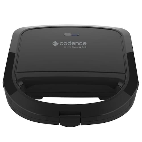 Sanduicheira elétrica Cadence Toast & Grill com 750W de potência, chapas antiaderentes, alça isotérmica, trava de segurança, pés antiderrapantes e luz sinalizadora.Funciona como grill