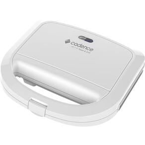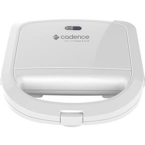 Sanduicheira Elétrica Cadence Toast & Grill Branca 220v com potência de 750W, chapas antiaderentes, alça isotérmica, trava de segurança e pés antiderrapantes.Funciona como grill