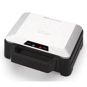 Potência 1000W. Chapas antiaderentes (superior ondulada e inferior lisa). Botão On/Off com luz indicadora de funcionamento. Alça isotérmica. Porta-fio na base. Pés reforçados. Base estável.Funciona como grill