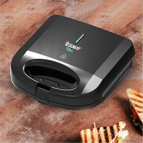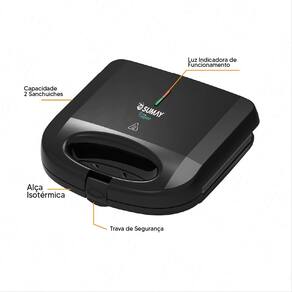 Sanduicheira Elétrica Sumay Cusine com 750W, revestimento antiaderente, trava de segurança, base antiderrapante e alça isotérmica.Funciona como grill