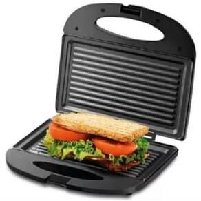 Sanduicheira Grill Eletrica 750W com antiaderente, luz indicadora e trava de segurança. Atinge até 180°C.Funciona como grill