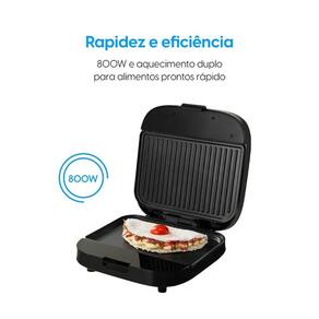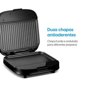 O Sistema de Aquecimento Duplo, com Uma Resistência para Cada Chapa, Garante Alimentos no Ponto Certo, de Maneira Rápida e Uniforme. Já o Revestimento Antiaderente Facilita a Limpeza e Prepara Pratos Mais Saudáveis, sem Precisar Usar Óleo.