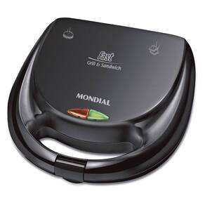Para mais praticidade e sabor no seu dia a dia, conte com a Sanduicheira Fast Grill e Sandwich Mondial. Com 750W de potencia e aquecimento nas duas chapas, grelha os alimentos dos dois lados com mais agilidade. Modelo 2 em 1, pode ser usada como grill e como sanduicheira. Alem disso, o revestimento antiaderente evita que os alimentos grudem e facilita a hora da limpeza.