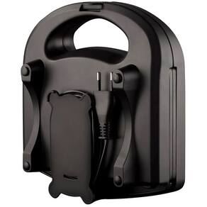 Sanduicheira Grill Cadence Ellegance Black com 750W de potência, placas antiaderentes onduladas, indicadores luminosos de funcionamento e porta-fio.Funciona como grill