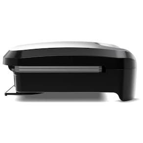 Sanduicheira e Grill Philco 2 em 1 com 750W de potência, chapa grill superior e lisa inferior, revestimento antiaderente, suporte para armazenar o cordão, botão liga/desliga e luzes de funcionamento e aquecimento.Porta-fio