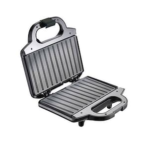 Sanduicheira com placas de grill idênticas, sistema thermo respect para cozimento rápido, luzes de sinalização, alça fria, trava de segurança e revestimento antiaderente.Termostato regulável