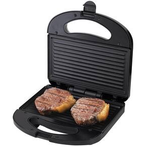 Características do Produto: .Pode ser usado como sanduicheira ou grill .Placas onduladas com revestimento antiaderente .Faz 2 sanduíches de uma só vez .Grelha hambúrgueres, carnes, peixes e vegetais .Luz indicadora de aquecimento (vermelha) .Luz indicadora de funcionamento (verde) .Trava de fechamento .Base antiderrapante .Pode ser guardado na posição vertical .Alça para transporte .Porta-fio .Garantia de 1 Ano .Material: Plástico e metal.
