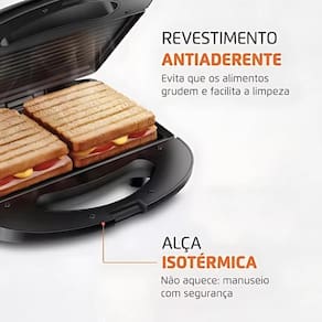 CARACTERÍSTICAS: - Cor: Preta - Voltagem: 110V - Potência: 750W - 2 em 1: Prepara deliciosos lanches e grelhados - Grelhas duplas: Grelham por igual os dois lados do alimento - Revestimento antiaderente: Os alimentos deslizam com mais facilidade - Trava de fechamento: Permite perfeita acomodação dos alimentos no interior do grill - Lâmpada piloto: Indica o funcionamento do aparelho - Controle de temperatura automático: Garante resultados perfeitos para os seus grelhados e sanduíches - Você pode preparar: carnes, legumes, sanduíches e muito mais Marca: Não Informado
