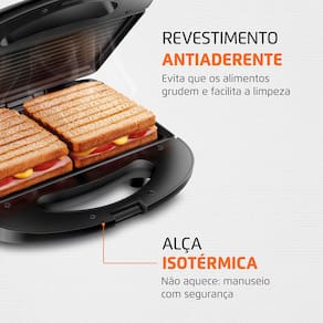 Sanduicheira Grill Mondial SN-01 Pratic 2 em 1 com 750W de potência, grelhas duplas antiaderentes eFunciona como grill