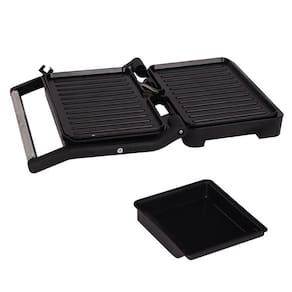Sanduicheira e grill elétrico com 1000W de potência, acabamento em inox escovado e detalhes em preto. Possui placas antiaderentes removíveis, bandeja coletora de gordura e alças com isolamento térmico.Termostato regulável