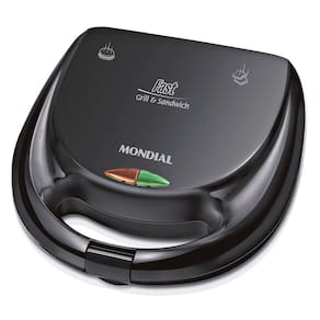 Sanduicheira Mondial Fast Grill E Sandwich S-12, 750W, grelha dupla antiaderente, lâmpadas-piloto, trava de fechamento.Funciona como grill