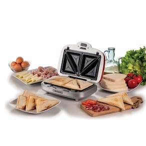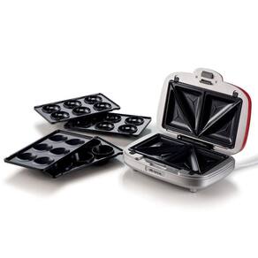Sanduicheira multifuncional retrô Ariete Party Time, com 3 placas antiaderentes para preparar sanduíches, muffins, cookies e donuts. Design retrô e elegante.Funciona como grill