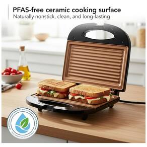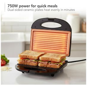 Placas antiaderentes com elemento de aquecimento de 750W para distribuição uniforme de calor. Indicada para preparos como hambúrgueres, frango, bifes, vegetais, omeletes, torradas francesas, paninis e sanduíches. Compacta para uso em cozinhas pequenas, escritórios ou dormitórios. Estrutura com pés antiderrapantes para estabilidade e alça de toque frio. Indicadores LED sinalizam status de energia e temperatura de cozimento. Termostato para prevenção de superaquecimento.Funciona como grill