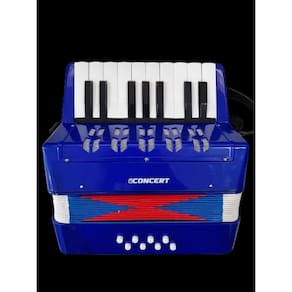 FICHA TÉCNICA: Inturmento: Sanfona/Acordeon Marca: Concert Modelo:CA-8 Cor: Azul Peso: 1,25 kg Dimensões: 22,5 x 23 x 11 cm Teclas: 17 Baixos: 8 Embalagem: 25 x 25 x 12 cm