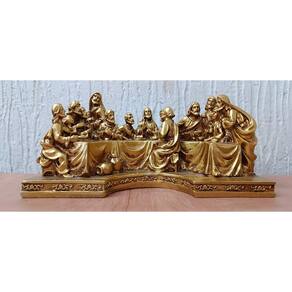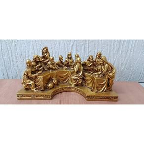 Material: Feita em resina durável, com um acabamento dourado que adiciona brilho e elegância, destacando a peça em qualquer ambiente. Dimensões: Com 23 cm de comprimento, o tamanho compacto é ideal para mesas, altares e aparadores, criando uma decoração de Natal impactante sem ocupar muito espaço. Design Rico e Detalhado: Esta representação da Santa Ceia destaca Jesus e os doze discípulos em uma cena detalhada, com um toque dourado que confere majestade e sofisticação. Cada figura foi esculpida com precisão, capturando gestos e expressões de forma refinada. Versatilidade na Decoração: Perfeita para ambientes internos, esta peça se adapta bem em salas de estar, altares, mesas decorativas e outros locais que precisam de um toque especial para as festas de fim de ano.