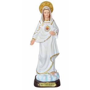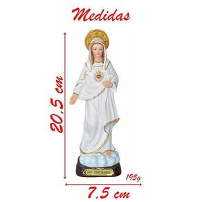 Santa Imagem Imaculado Coração De Maria Resina 20,5cm - O Imaculado Coração de Maria é uma invocação mariana e devoção católica cujo culto foi pedido pelo Céu de modo expresso à Madre Virgínia Brites da Paixão, ganhou grande e particular destaque com as aparições de Fátima e encontrou o derradeiro reconhecimento mediante as revelações de Jesus Cristo feitas à Beata Alexandrina de Balazar. A devoção consiste na veneração do Imaculado Coração da Santíssima Virgem Maria, mãe de Jesus.