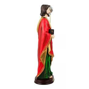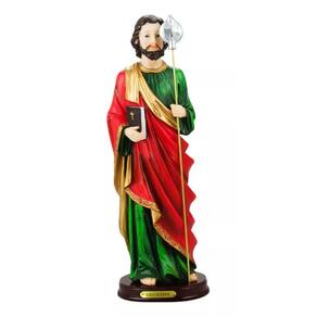 Enfeite decorativo na imagem de São Judas de 31,5 cm de altura. Detalhes e cores realistas. Material: resina