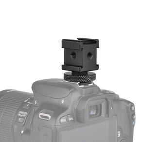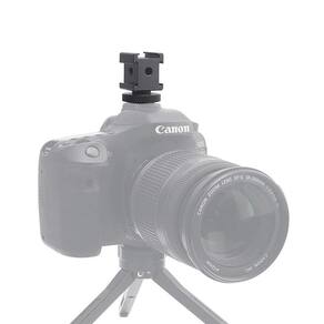 Sapata De Cabeça Tripla Cold Shoe De Montagem Em Câmeras E Acessórios Esta Sapata de Cabeça Tripla de Montagem em Câmeras e Acessórios, lhe oferece a possibilidade de montar até três acessórios simultaneamente em seu equipamento; como Monitor do Campo, Microfones, Luz de Flash, Iluminadores Led, Luz de Vídeo, entre outros. É um acessório Universal o Conector da Sapata Tripla Head Cold Shoe na parte inferior pode ser Utilizado para todas as Câmeras da Sapata padrão, na parte frontal de todos os lados tem rosca padrão de 1/4, e sua parte superior possui rosca de 3/8, para estender a outros acessórios como Braços Mágicos Magic Arm sendo muito prático para tornar a sua tomada de fotos, gravação de áudio e vídeo mais profissional.Feito em Liga de Alumínio de alta qualidade, é pequeno, leve e fácil de transportar.Ideal para montando em Câmeras DSLR, Câmeras Mirrorless, Filmadoras, Monitor do Campo, Microfones, Luz de Flash, Iluminadores Led, Luz de Vídeo, entre outros