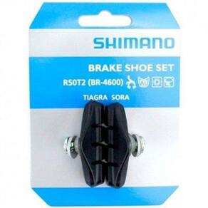 Sapata de freio Shimano BR 4600 R50T2 Tiagra Sora para Speed Sapata de Freio Shimano R50T2 para freios modelo travão de speed, pastilha de modelo orbital borracha macia e durável Para aros de alumínio Modelos compatíveis: BR-4600 / BR-4500 / BR-3500 / BR-3400 / BR-2400 / BR-R451 / BR-R450 Produto original.