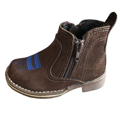 Este modelinho de calçado infantil para meninos está super em alta! Fechamento relâmpago na lateral da bota permite que a criança calce a botina sozinho,