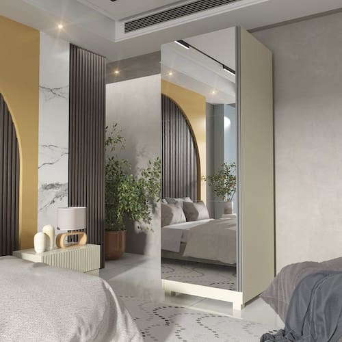 Características: Pés inclusos Porta de espelho com três lâminas Prateleiras para melhor organização Puxador perfil de aço