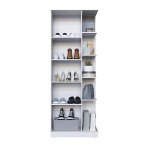Sua estrutura em MDP de alta qualidade oferece resistência e estabilidade, enquanto as prateleiras internas e externas garantem excelente organização para calçados, acessórios, produtos de limpeza ou itens diversos. A porta com espelho de corpo inteiro agrega sofisticação e funcionalidade ao móvel, otimizando ainda mais o espaço.