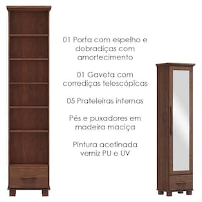 Sapateira 1 Porta Espelho Madeira Maciça 194x47 Cm 2255 Cafe Milani Store Cafe