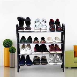 Sapateira 12 Pares Grande Expansível Empilhável 4 Prateleiras Alumínio Desmontável Organizador Preto