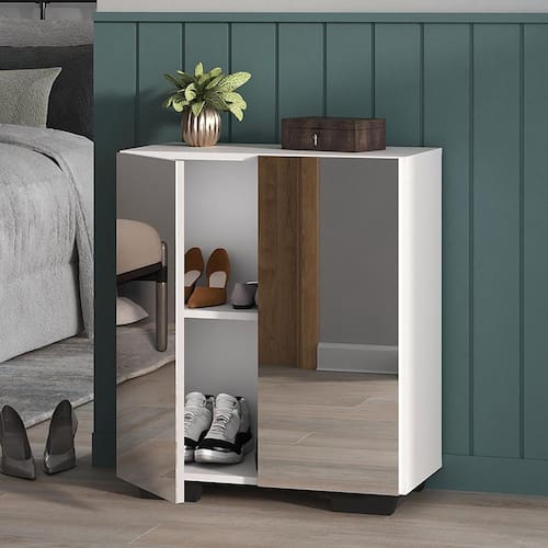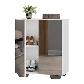 A Sapateira 2 Portas com Espelho Nina Multimóveis é produzida em MDP com acabamento acetinado (cerca de 20% de brilho), que garante maior durabilidade, facilidade na limpeza, além de um acabamento superior. Com 2 portas, possui um excelente espaço interno para acomodar seus sapatos e demais pertences (a prateleira interna suporta 8 Kg e o tampo 9 Kg). Os pés quadrados, em polipropileno, facilitam na hora da limpeza. Os espelhos na porta deixam o móvel mais requintado, criando um ambiente moderno e charmoso. Os espelhos são de vidro (o que evita que a imagem fique distorcida) e lapidados, ou seja, passam por um processo para que as bordas não fiquem cortantes, o que garante maior segurança. Compacta, é uma excelente opção para otimizar seu ambiente, para que você possa aproveitá-lo da melhor maneira possível.