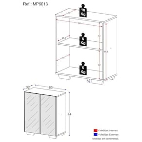 Altura: 74cm | Largura: 63cm | Profundidade: 32cm