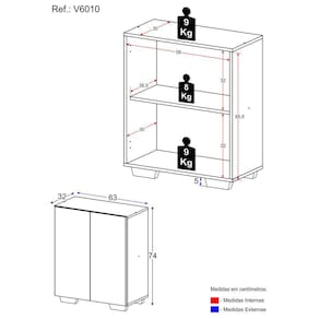 Dimensões do produto montado: Altura: 74cm | Largura: 63cm | Profundidade: 32cm *Você pode consultar as medidas internas na imagem técnica do produto.
