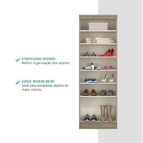 O Armário Sapateira Multiuso Carraro é a peça ideal para ser utilizada em diferentes cômodos da casa, ajudando a manter todos os objetos em ordem e assim facilitando as tarefas do dia a dia. É uma solução indispensável para quem precisa de mais espaço e organização para o ambiente, pois conta com diversas prateleiras internas.Especificações do Produto:Medidas: Largura: 60,7 cm | Altura: 182 cm | Profundidade: 37,8 cmPeso: 36 KgMatéria Prima: MDPPortas: 2 portas de batenteSistema Abertura: Dobradiça 26mmPuxador: ABSPrateleiras: 6 (7 nichos)Peso suportado em cada prateleira: Até 10 Kg