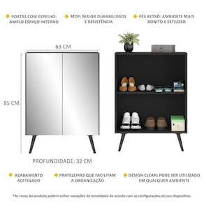 Produto Composto Por: 1 Sapateira, 1 Kit Com 4 Pés Retrô, 1 Kit Com 2 Espelhos, Manual de Montagem E. Kit Ferragem.