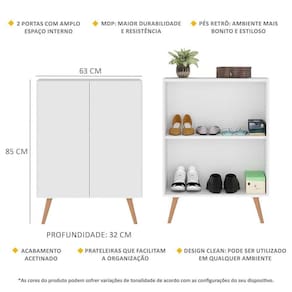 A Sapateira 2 Portas Retrô Nina Multimóveis é produzida em MDP com acabamento acetinado (cerca de 20% de brilho), que garante maior durabilidade, facilidade na limpeza, além de um acabamento superior. Com 2 portas, possui um excelente espaço interno para acomodar seus sapatos e demais pertences (a prateleira interna suporta 8 Kg e o tampo 9 Kg). Os pés retrô, em polipropileno, dão um charme especial ao móvel deixando-o com um visual leve e permitindo você compor um ambiente com ar vintage e moderno ao mesmo tempo. Compacta, é uma excelente opção para otimizar seu ambiente, para que você possa aproveitá-lo da melhor maneira possível.