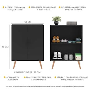 A Sapateira 2 Portas Retrô Nina Multimóveis é produzida em MDP com acabamento acetinado (cerca de 20% de brilho), que garante maior durabilidade, facilidade na limpeza, além de um acabamento superior. Com 2 portas, possui um excelente espaço interno para acomodar seus sapatos e demais pertences (a prateleira interna suporta 8 Kg e o tampo 9 Kg). Os pés retrô, em polipropileno, dão um charme especial ao móvel deixando-o com um visual leve e permitindo você compor um ambiente com ar vintage e moderno ao mesmo tempo. Compacta, é uma excelente opção para otimizar seu ambiente, para que você possa aproveitá-lo da melhor maneira possível.