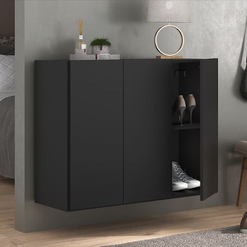 Sapateira 3 Portas Suspensa Nina Multimóveis MP6017 Preta - Preto