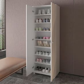 Dê adeus à bagunça no quarto e dê boas-vindas à praticidade com elegância! Esta sapateira com 2 portas e 7 prateleiras é a solução perfeita para quem deseja manter seus calçados organizados e ao alcance das mãos. Design funcional e sofisticado com acabamento na delicada cor branca, ela combina com diversos estilos de decoração, trazendo um toque acolhedor ao ambiente. Capacidade inteligente com 7 prateleiras internas bem distribuídas, é ideal para armazenar sapatos, tênis, sandálias e até acessórios. As 2 portas garantem um visual limpo e organizado, além de proteger os calçados da poeira. Perfeita para quartos, closets ou até corredores. Acabamento da Porta: BP Acabamento da Prateleira: BP Acabamento dos Pés: Polipropileno Altura dos Pés: 4 cm Ambiente Principal: Quarto codigo_ean: 7900288185754 Complexidade da Montagem: Média: pode ser montado por mais de uma pessoa e/ou necessite de maior conhecimento para montagem Cor: Branco Cor do Produto: Branco Cor do Puxador: Prata Cor Flex: Branco Cor Interna: Branco Escala de Brilho: Semi-Brilho Escala de Brilho da Porta: Semi-Brilho Escala de Brilho da Prateleira: Semi-Brilho Informações Complementares: 03kg cada prateleira. Itens Inclusos: 1 Sapateira, Kit Ferragens e Manual de Montagem Linha ou Coleção: Sa Manual de Especificação Técnica: https://product-hub-prd.madeiramadeira.com.br/188872828/documents/1e61cb63-e6f8-4874-b7c5-02c9daebb24730361266417513784415113.pdf Manual de Montagem e Instalação: https://product-hub-prd.madeiramadeira.com.br/188872828/documents/8b079a1d-8516-4549-a2ab-39782392208230361286417513784434546.pdf Marca: Espresso Móveis Material da Porta: MDP Material da Prateleira: MDP Material do Puxador da Porta: PVC Material dos Pés: PVC Material Principal: MDP Montagem Flex: Não. Necessita Montagem: Sim Origem do Produto: Nacional Pés Reguláveis: Não Peso: 34,3 kg Peso Máximo por Prateleira: 3 kg Possui Espelho: Não Possui Possui Pés: 04 Possui Portas: 02 Possui Prateleiras: 07 Possui Rodízio: Não Recomendações de Uso, Manutenção e Limpeza: Para uma limpeza mais efetiva, utilizar apenas pano macio umedecido e sabão neutro. Não utilizar produtos abrasivos. Sapatas Niveladoras: Sim Sistema de Montagem: Sim. Aconselhamos que a montagem seja feita por um profissional. Forre o chão com o próprio papelão de nossas embalagens para evitar danos e arranhões e monte o móvel deitado de costas para cima. Após montado não expor o móvel a fonte de calor ou umidade. Suporta Até (kg): 24 kg Tipo de Dobradiça/Corrediça da Porta: Alumínio Tipo de Porta: Abrir Tipo de Puxador da Porta: Externo