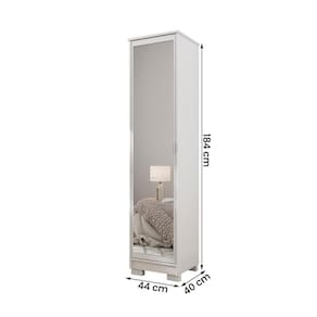 Quantidade de portas: 01 com espelho em módulos 78 cm x 51 cm x 0,3 cm (dobradiças metálicas);