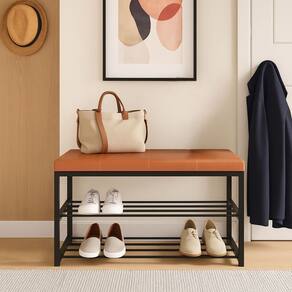 Banco Sapateira 2 Andares – Estrutura Metálica Preta com Assento Estofado - Design Industrial e Funcional