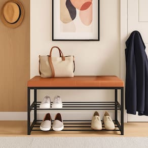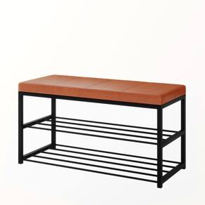 Sapateira Banco Estofado Assento Organizador Prateleiras - Caramelo