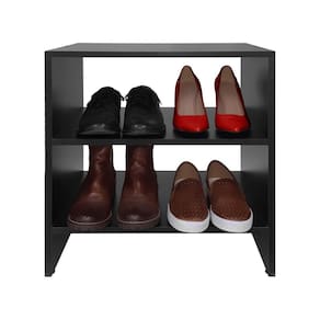 Cor: Preto Material: madeira MDP 15mm Altura: 40cm Largura: 50cm Profundidade: 25cm Nichos: os nichos interiores para acomodarem os calçados possuem 18,5cm de altura.