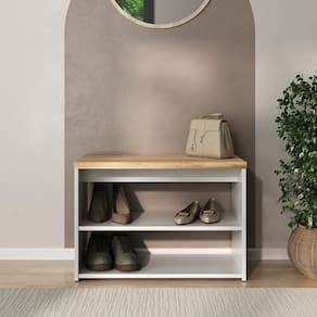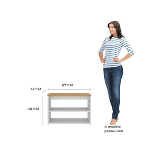 A sapateira/banco Safira combina praticidade e funcionalidade de forma excepcional. Revestida 100% em BP, sua durabilidade é garantida, enquanto o tampo de 2,5 cm oferece uma superfície robusta e elegante. O produto possui sapatas que
