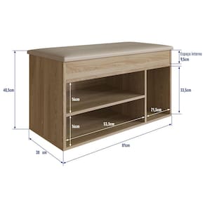 O(a) Sapateira Baú 3 Nichos Oak Sp080 – Completa Móveis é produzido em MDP na escala de brilho Fosco, e possui um grau de dificuldade de montagem: Médio.
