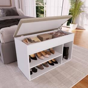 No dormitório, ela é perfeita para camas de solteiro, mas também pode ser utilizada com camas de casal. Além de guardar seus calçados de forma prática, o baú com tampo estofado também permite armazenar acessórios, livros e outros pertences. No hall de entrada, ela oferece as mesmas praticidades e funções, além de adicionar charme e estilo à decoração.