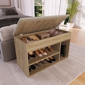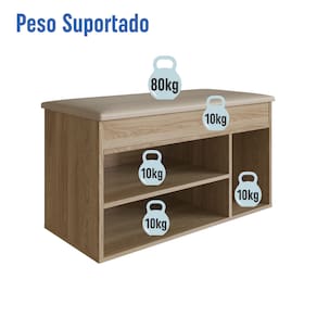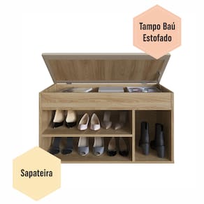 Sapateira Baú com Tampo Estofado 3 Nichos SP080 OAK -