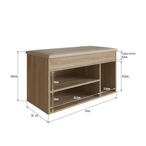 A Sapateira Baú Oak com Tampo Estofado da Completa Móveis é um produto versátil, ideal para organizar seu lar e valorizar a decoração da sua casa com grande estilo, pode ser utilizada em ambientes como: dormitório e hall de entrada. No dormitório, ideal para cama de solteiro, mas, podendo ser utilizada perfeitamente com cama de casal. Praticidade em guardar seus calçados e facilitando quando da colocação dos mesmos. Baú com tampo estofado o qual prático e confortável, bom para guardar não somente acessórios pros calçados, mas tmbém livros e outros pertences. Como hall de entrada, ideal para as mesmas praticidades e funções do seu quarto, além do charme e decoração! Acabamento da Prateleira: Finish Foil Acabamento dos Pés: Polipropileno Altura dos Pés: 1,5 cm Ambiente Principal: Quarto Complexidade da Montagem: Baixa: pode ser montado por uma pessoa sozinha Cor: Oak Cor do Produto: Oak Cor Flex: Não Cor Interna: Oak Escala de Brilho: Fosco Escala de Brilho da Prateleira: Fosco Itens Inclusos: 1 Sapateira Linha ou Coleção: Sapateira Manual de Especificação Técnica: https://cdn2.madeiramadeira.com.br/atributo/completa-moveis/880768-manual-sp-080.pdf Manual de Montagem e Instalação: https://cdn2.madeiramadeira.com.br/atributo/completa-moveis/880784-memorial-descritivo-sp-080-oa-oa.pdf Material da Prateleira: MDP Material dos Pés: Plástico Material Principal: MDP Montagem Flex: Não Necessita Montagem: Sim Origem do Produto: Nacional Pés Reguláveis: Não Peso: 18,4 kg Peso Máximo por Prateleira: 10 kg Possui Espelho: Não Possui Pés: 06 Possui Portas: Não Possui Prateleiras: 03 Possui Rodízio: Não Recomendações de Uso, Manutenção e Limpeza: Use um pano levemente umedecido com água, seguido de pano seco. Não utilize produtos químicos ou abrasivos. Sapatas Niveladoras: Não Sistema de Montagem: Parafusos + Cavilhas + Dobradiça Suporta Até (kg): 110 kg