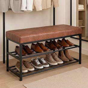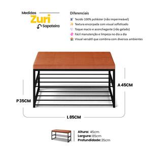 Sapateira Calçadeira Multiuso Closet Zuri 85cm: funcional, moderna e projetada para organizar seu ambiente com praticidade. Com estrutura reforçada em metal e assento macio, é perfeita para apoiar, sentar e manter seus calçados sempre à mão. Seu revestimento sintético facilita a limpeza no dia a dia. Equipada com duas prateleiras de metal, a Zuri acomoda diversos pares de sapatos, mantendo tudo organizado e ventilado. Ideal para closets, dormitórios, halls e áreas de circulação, proporcionando conforto ao calçar e elegância na composição do ambiente.
