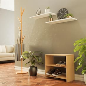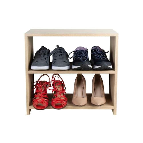 Cor: Carvalho (Madeira Clara) Material: Madeira MDP 15mm Altura: 48,5cm Largura: 50cm Profundidade: 25cm Nichos: os nichos interiores para acomodarem os calçados possuem 18,5cm de altura.